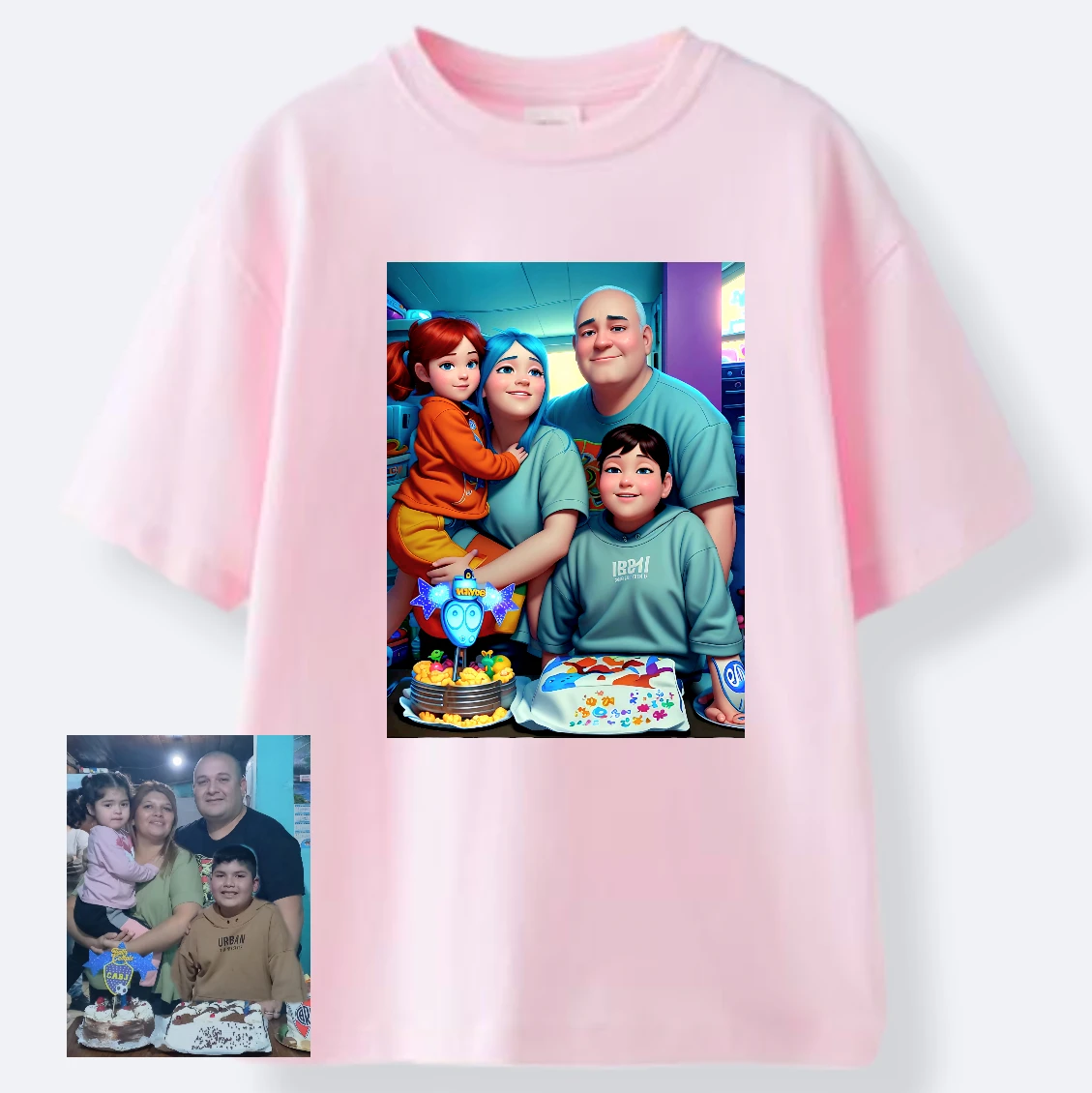 Sube la foto que desees y disfruta de una transformación única y preciosa en forma de dibujo animado para darle un toque divertido a tu prenda. Un regalo para dejar con la boca abierta.