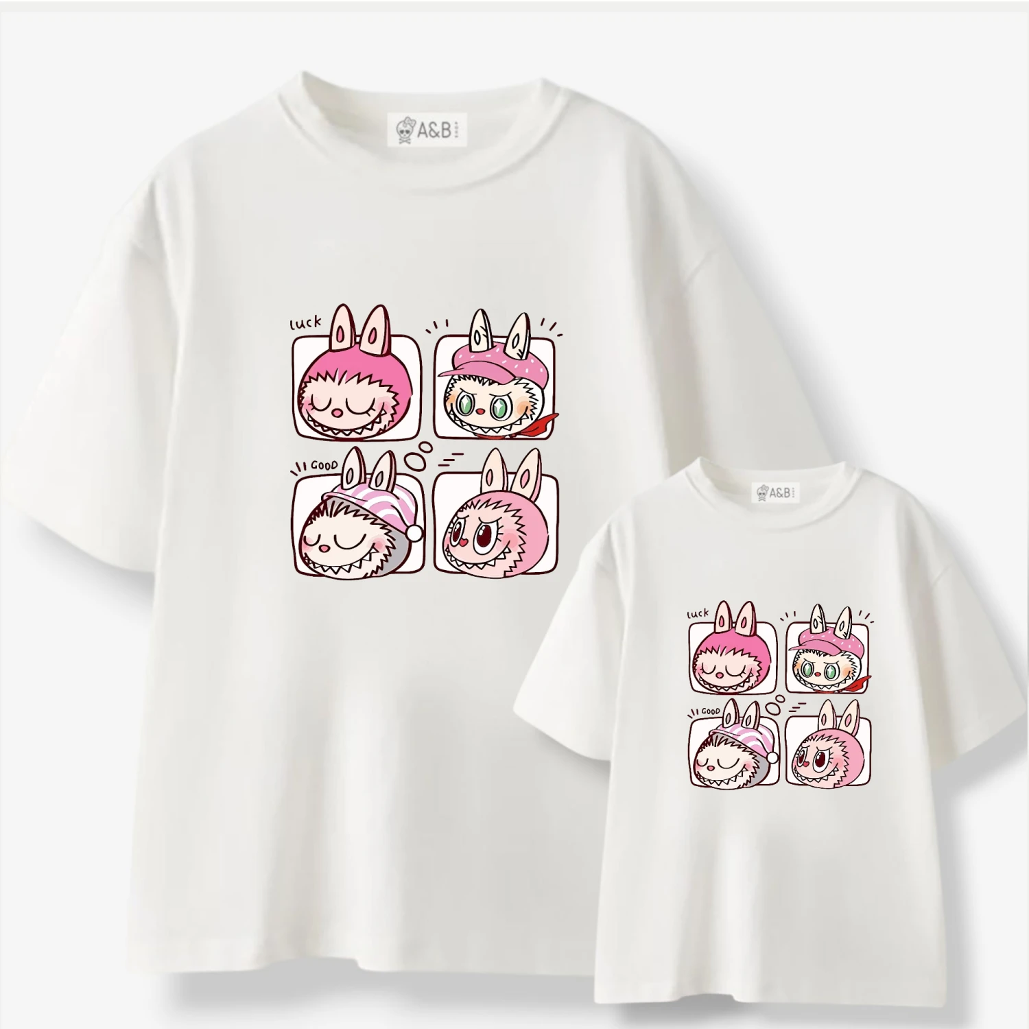 Esta es una camiseta muy especial, con pequeñas criaturas monstruosas con pelaje suave, orejas puntiagudas, ojos grandes y dientes afilados que, a pesar de su apariencia traviesa, son todo ternura y simpatía.