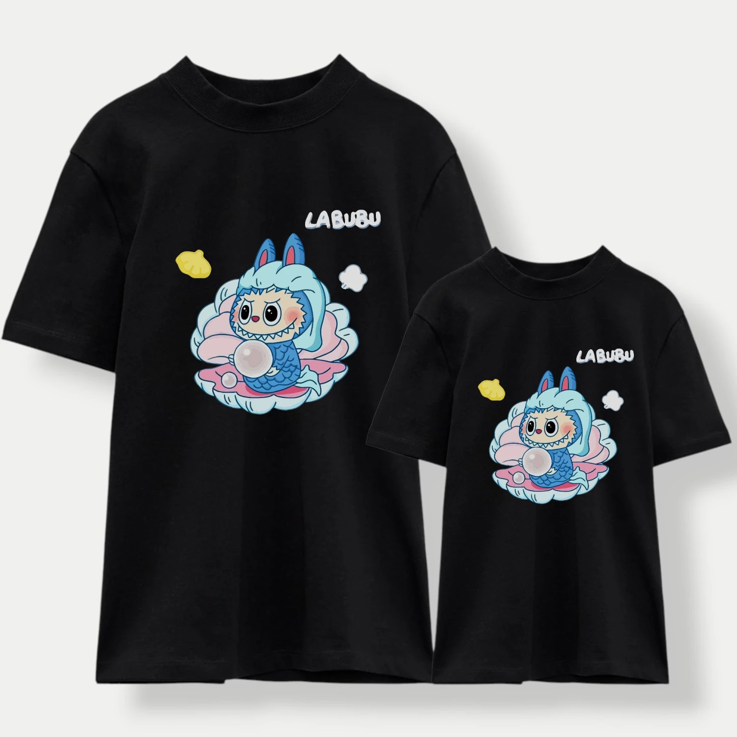 Esta es una camiseta muy especial, con pequeñas criaturas monstruosas con pelaje suave, orejas puntiagudas, ojos grandes y dientes afilados que, a pesar de su apariencia traviesa, son todo ternura y simpatía.