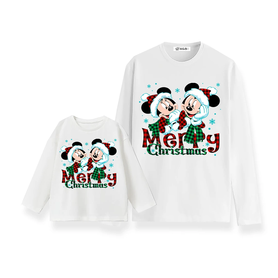 Camiseta de corte unisex con el detalle de Mickey & Minnie navideños para toda la familia de manga larga para que arraséis en estas fechas tan señaladas! 🎄🤍🎄