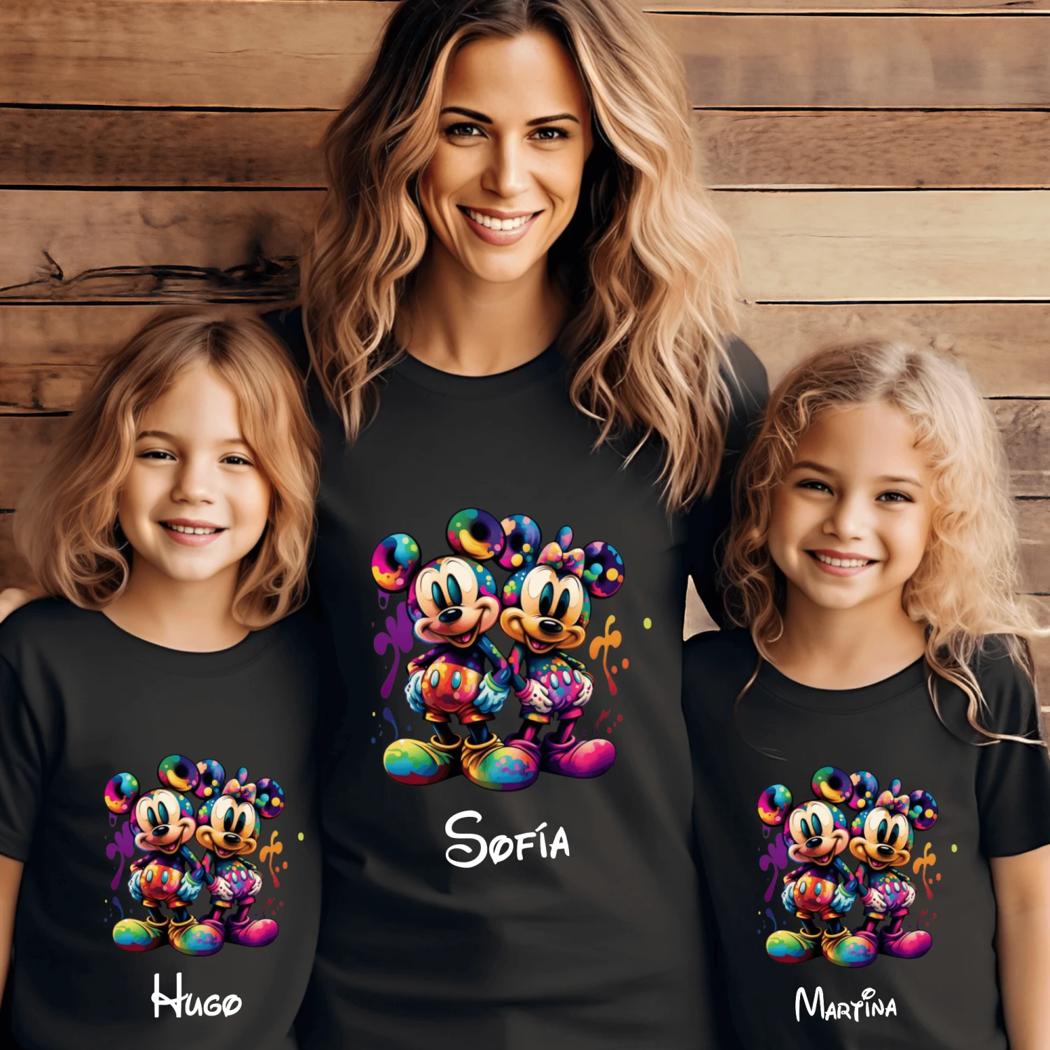 Camiseta igual para toda la familia con nuestros personajes favoritos Mickey y Minnie dándole un toque de color con este diseño tan alegre😍😍😍.