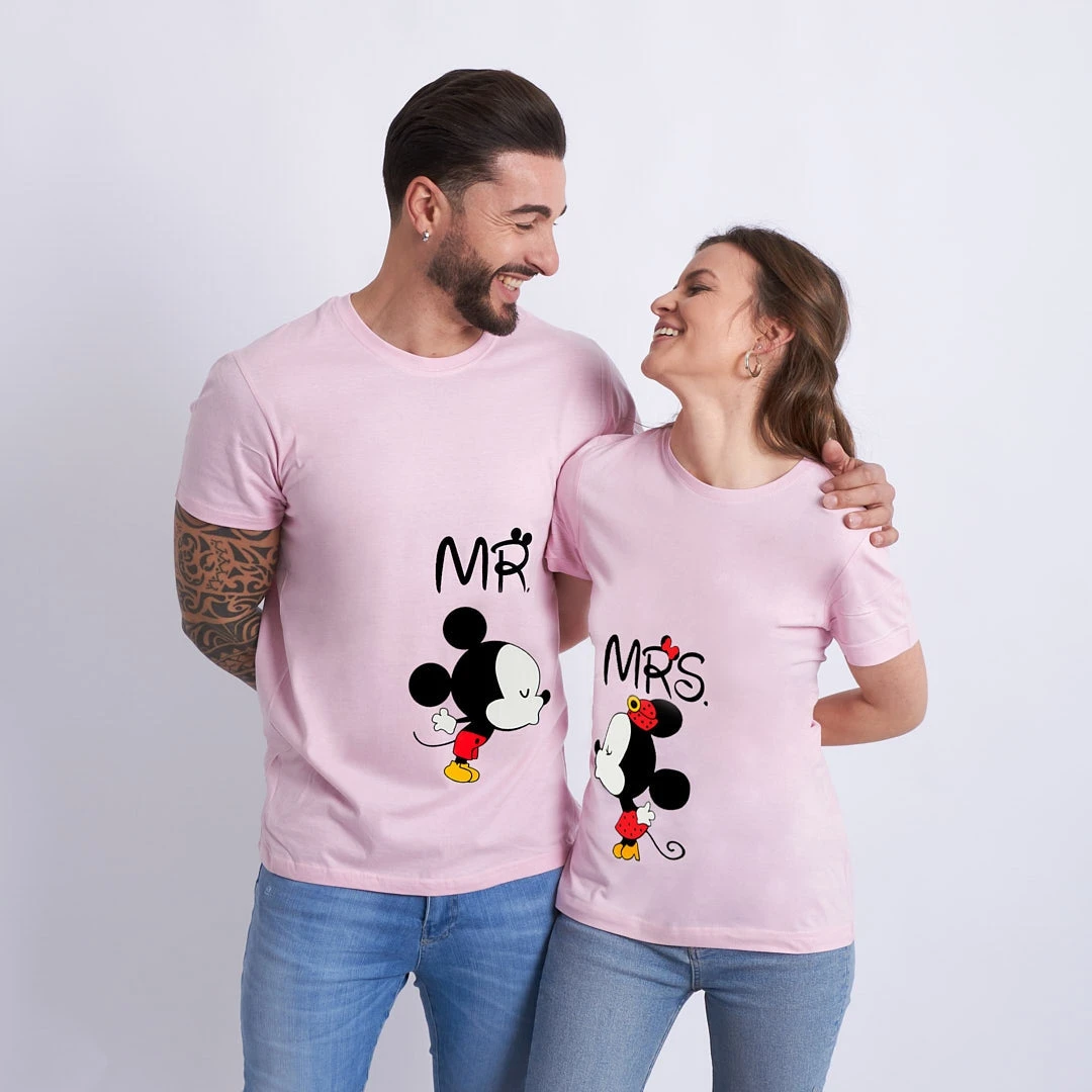 * Hay que elegir entre camiseta para mujer-niña o hombre-niño. Y en estampado si quieres Mickey o Minnie. La figura de Mickey y Minnie van en sentido opuesto y tal y como aparecen en la fotografía.