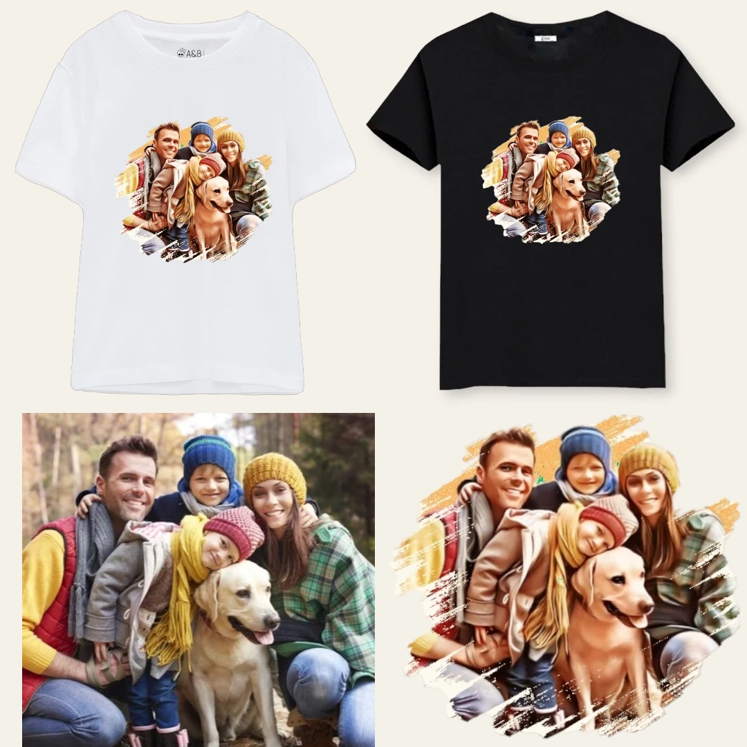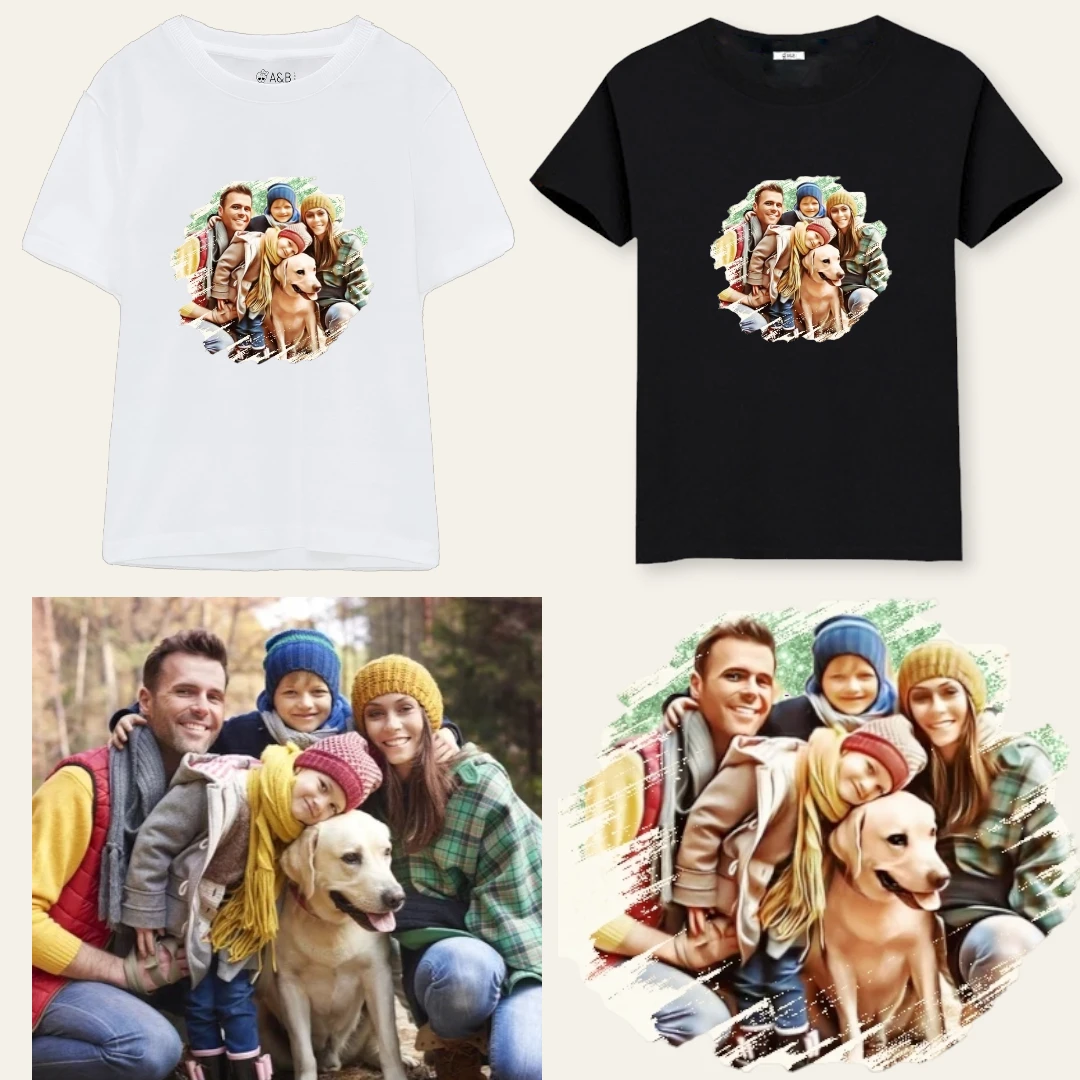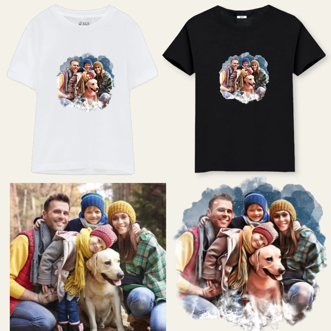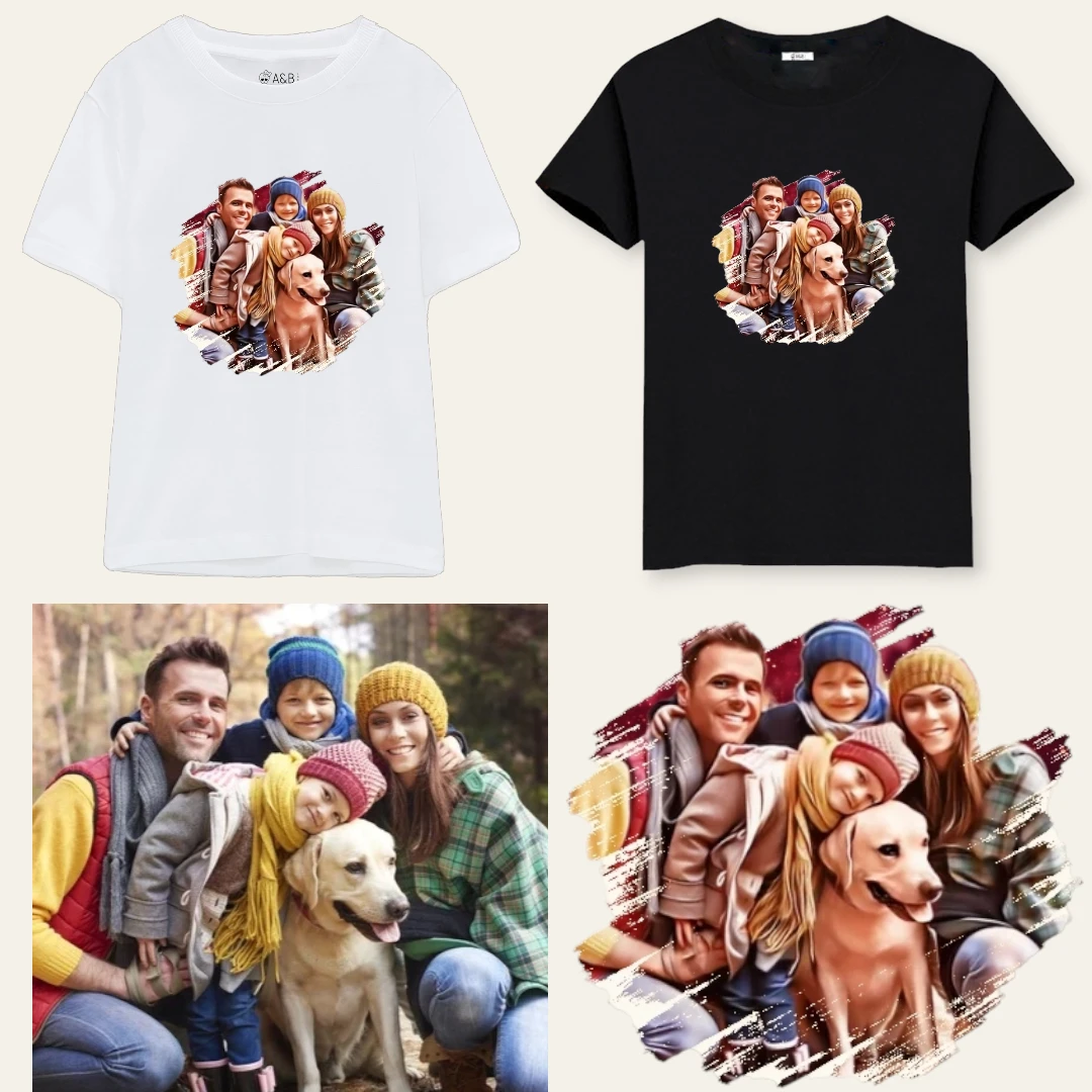 Camiseta igual para toda la familia. Sorprende con un producto único llevando una foto de quien desees a otro nivel. Mami, Papi, Hijo, Hija, Mascota…