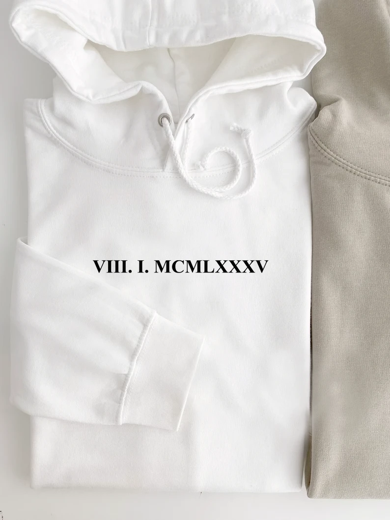 Esta es una sudadera muy especial, elegante, bonita e única , pon la fecha que tu quieras y nosotras la pasamos a números romanos 💕