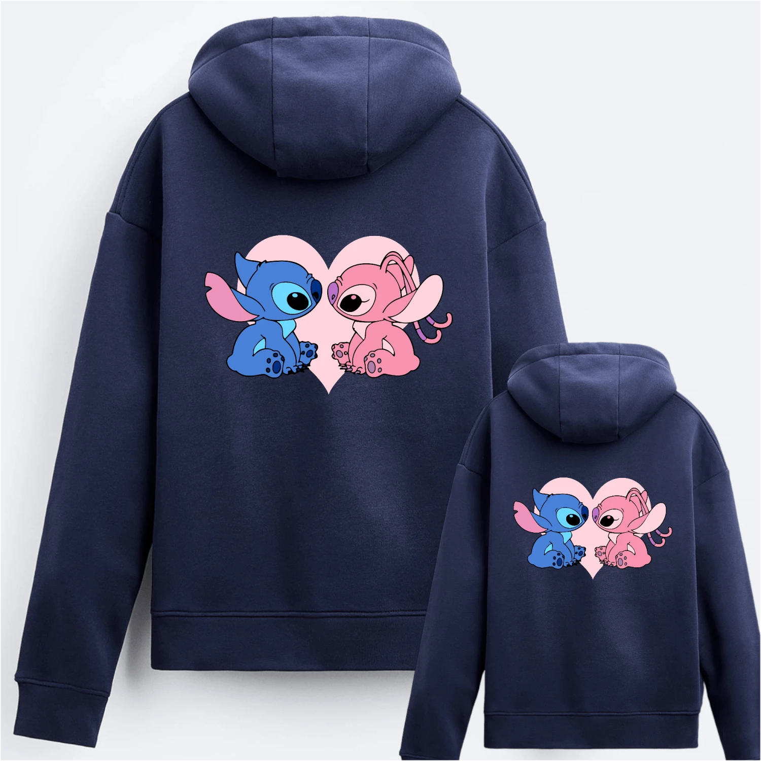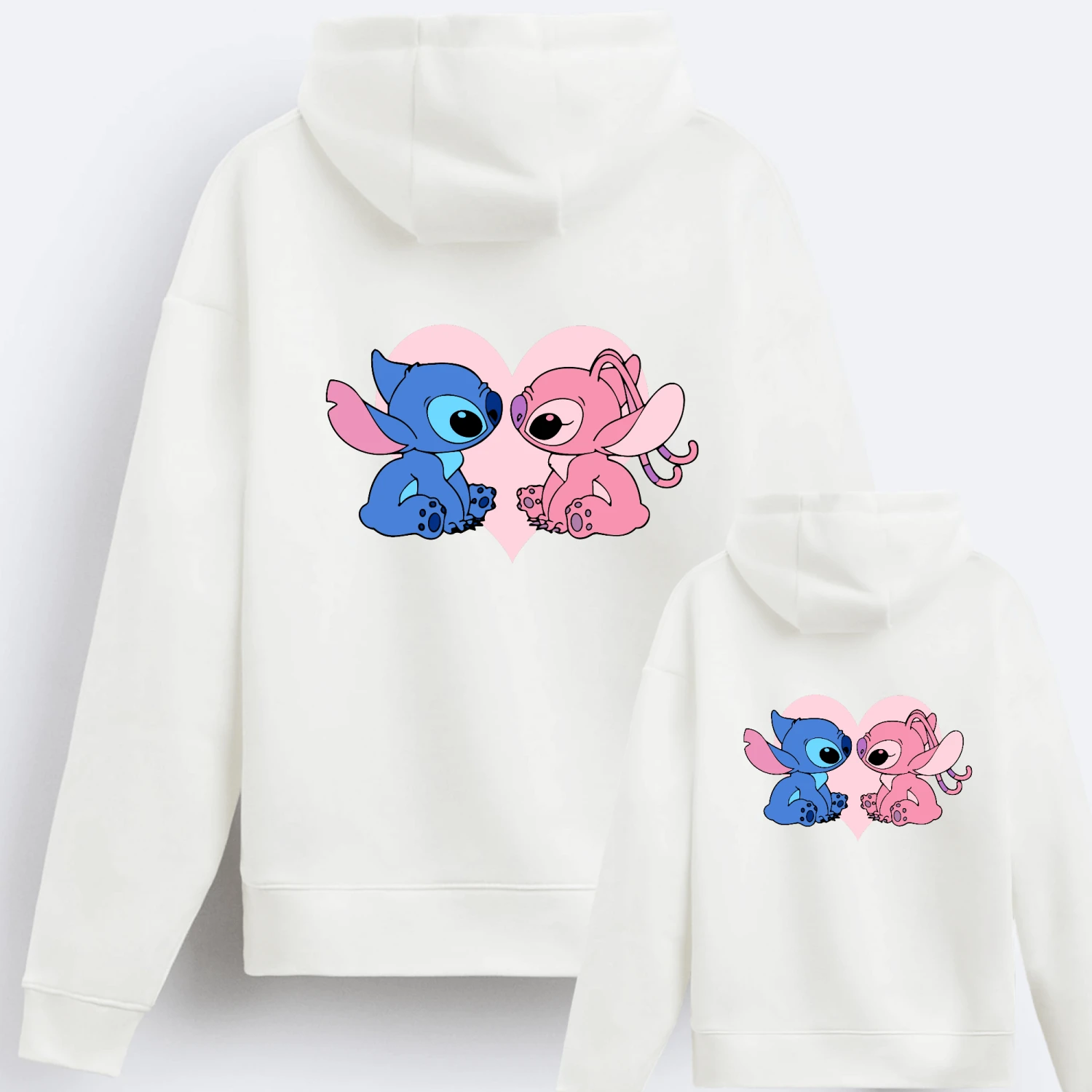 Sudadera capucha igual para toda la familia con nuestro amigo Stitch y su novia Ángel, dentro de un corazón.
