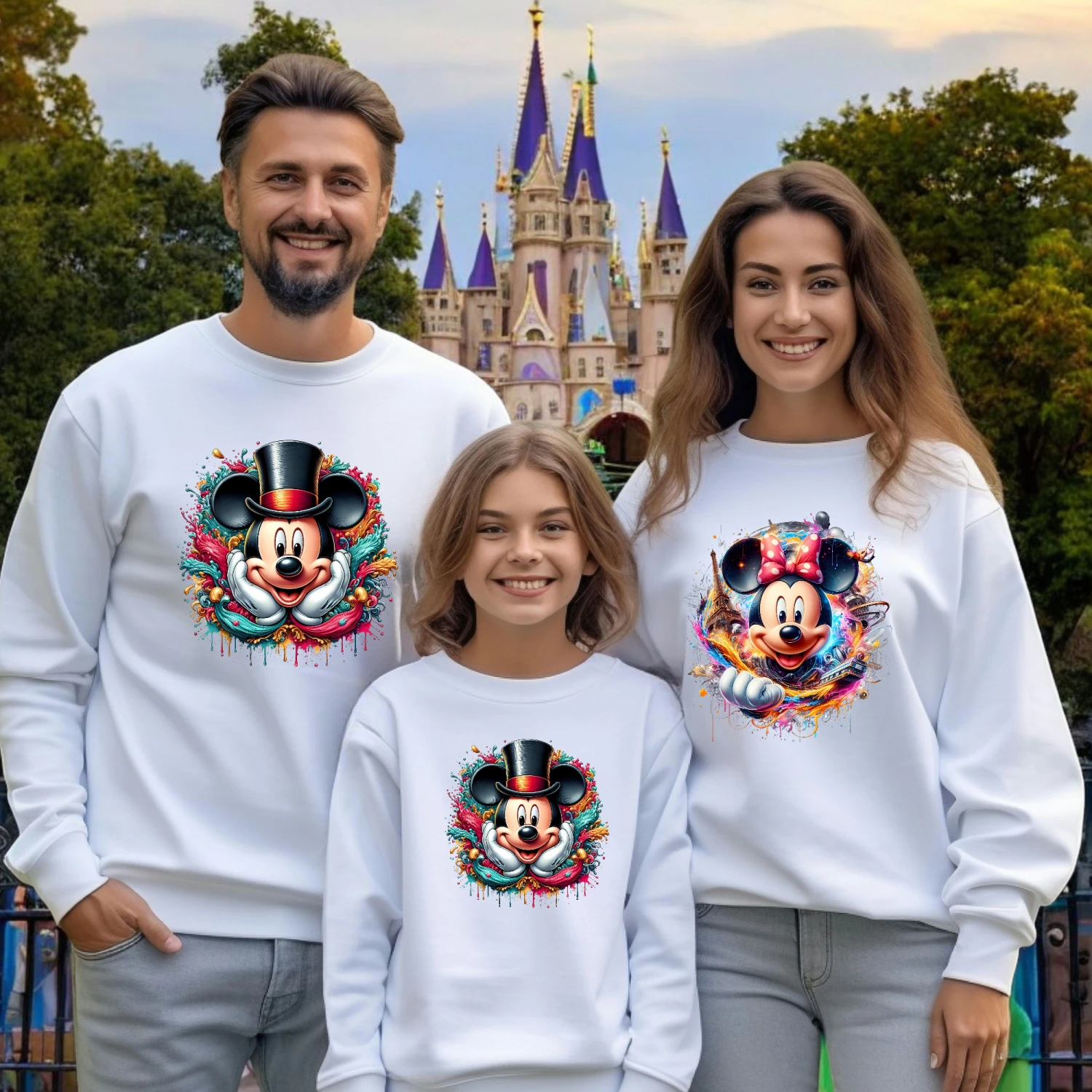 Sudadera igual para toda la familia con nuestros personajes favoritos Mickey y Minnie dándole un toque de color con este diseño tan alegre😍😍😍…iréis todos muy cuquis…..💖💖💖
