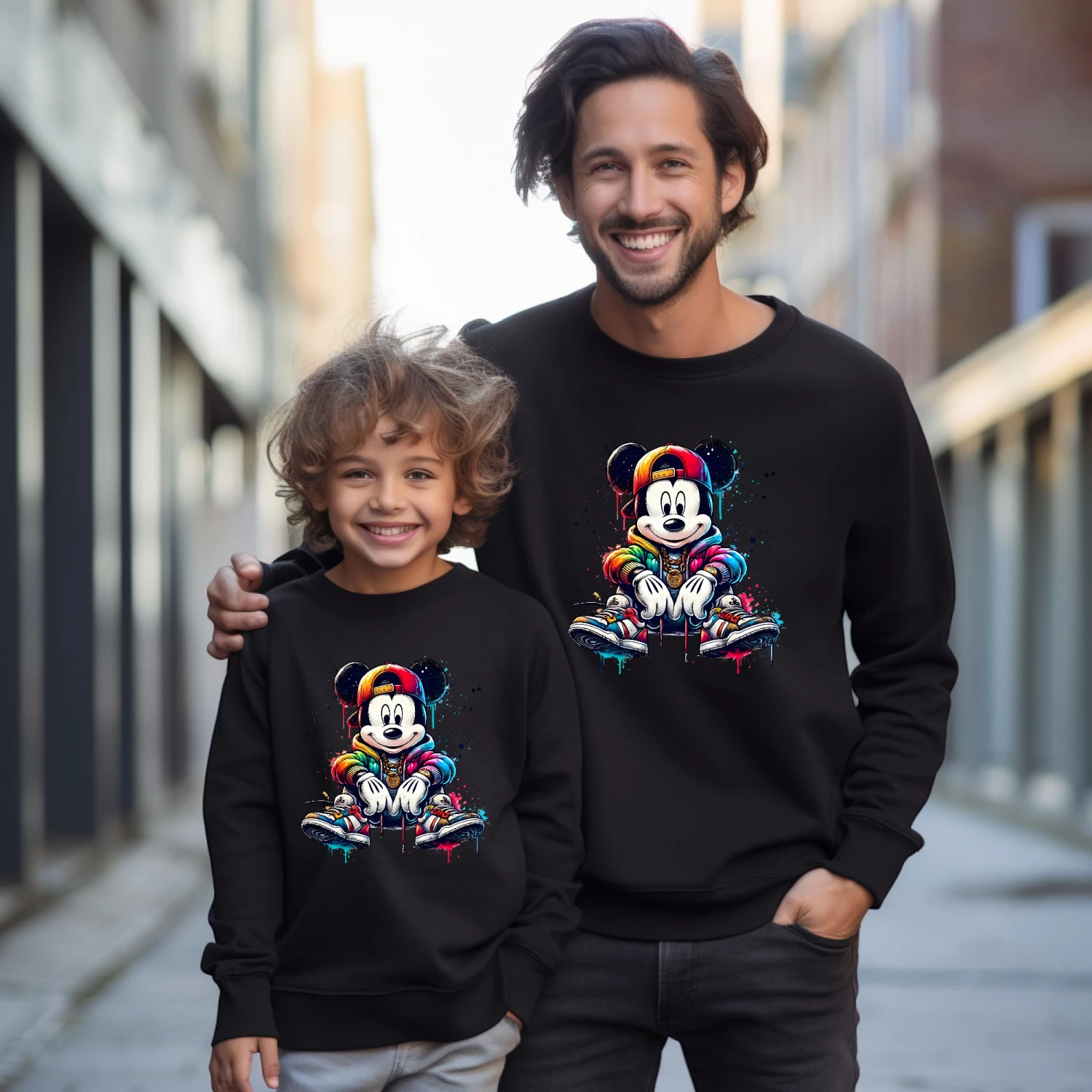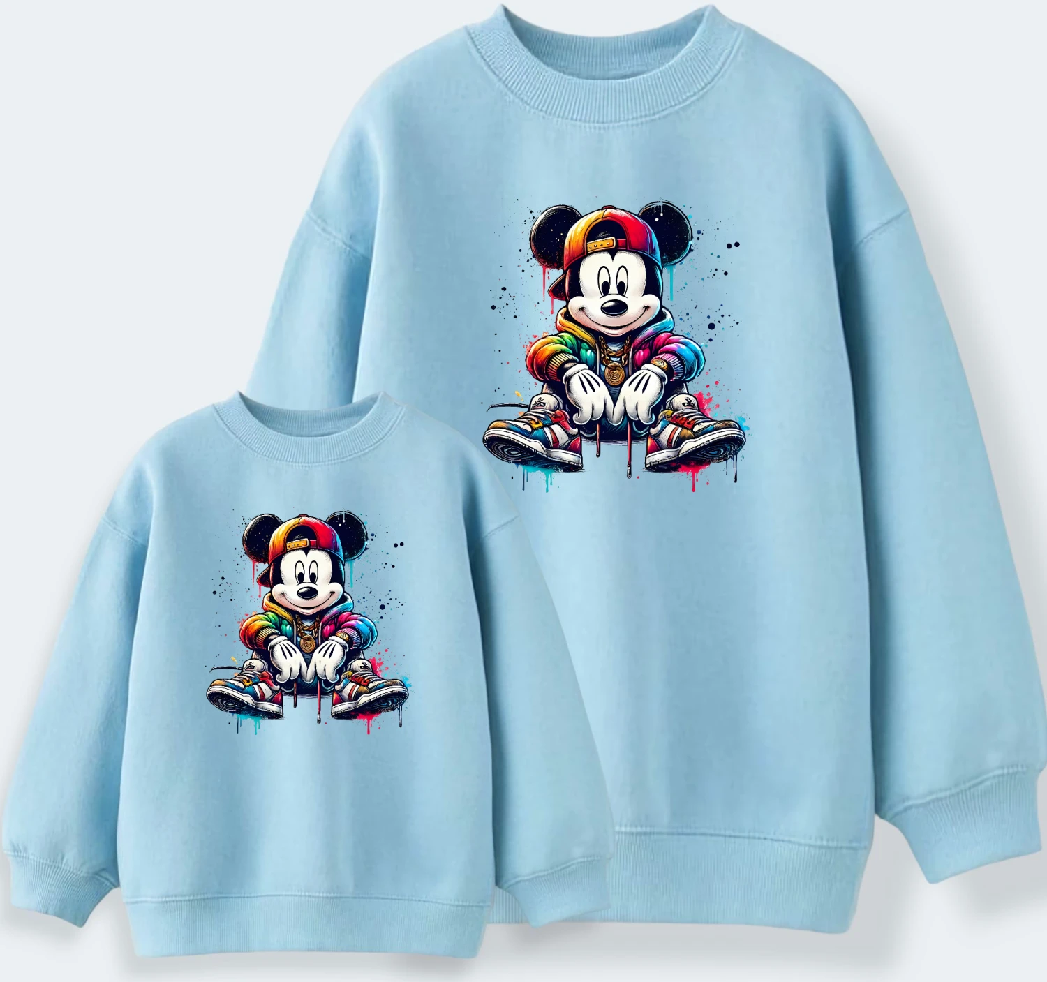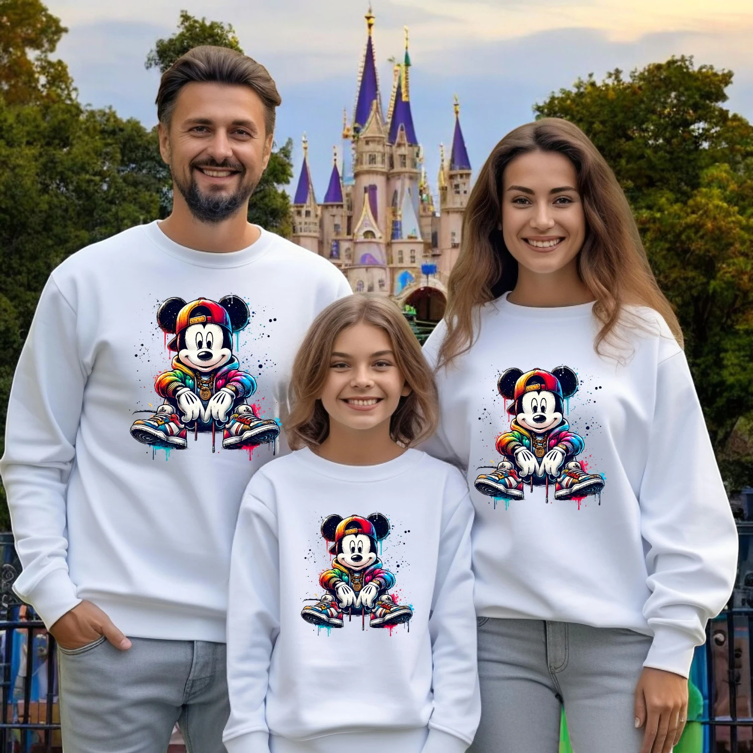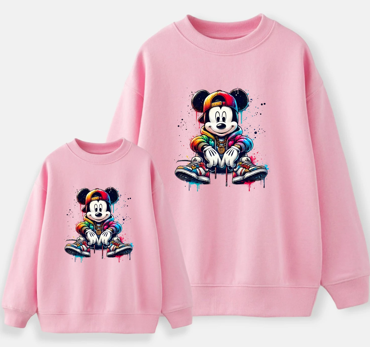 Sudadera igual para toda la familia con nuestros personajes favoritos Mickey y Minnie dándole un toque de color con este diseño tan alegre😍😍😍…iréis todos muy cuquis…..💖💖💖
