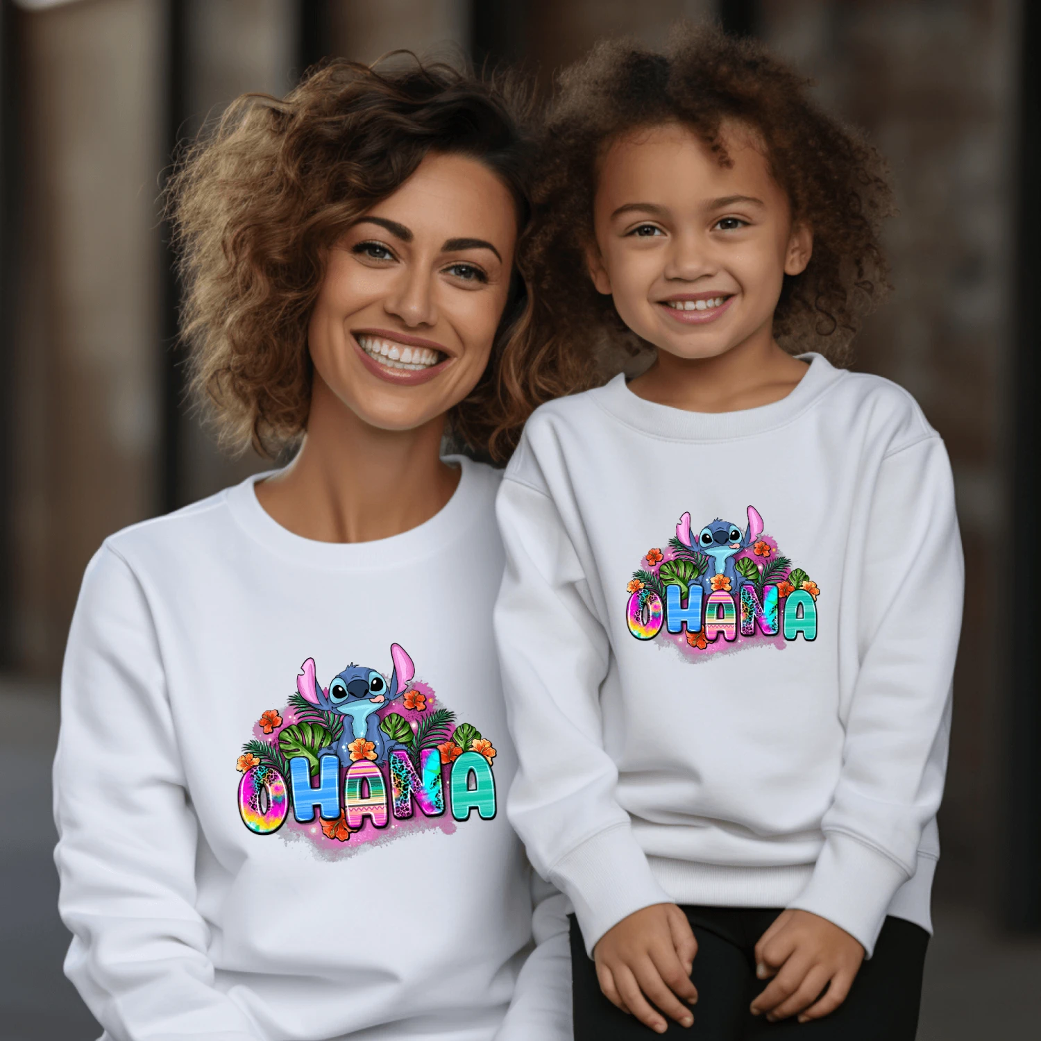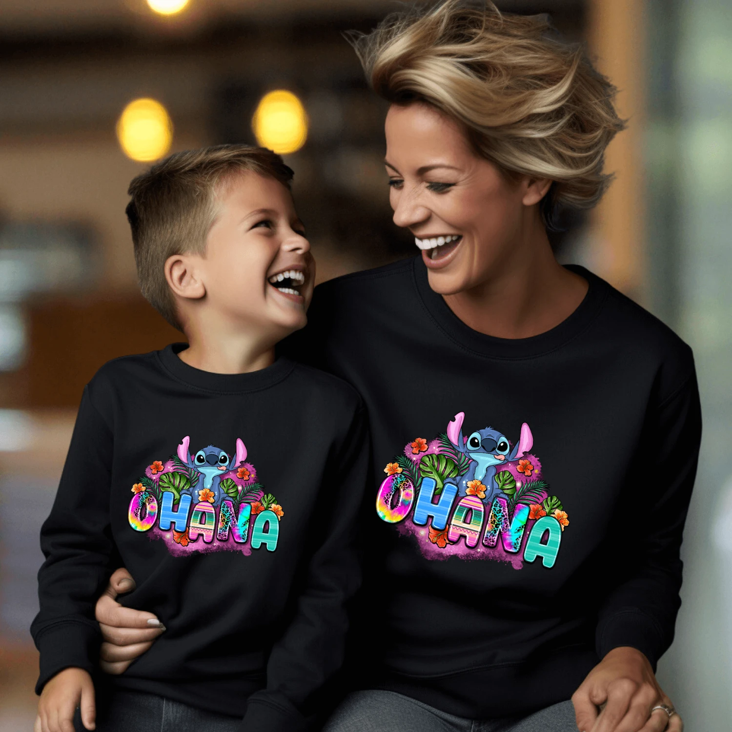 Sudadera igual para toda la familia con nuestro amigo Stitch Ohana, Ohana:» significa familia, la familia nunca te abandona… ni te olvida». Nosotras nos identificamos plenamente con esta expresión, es la base de nuestra vida.